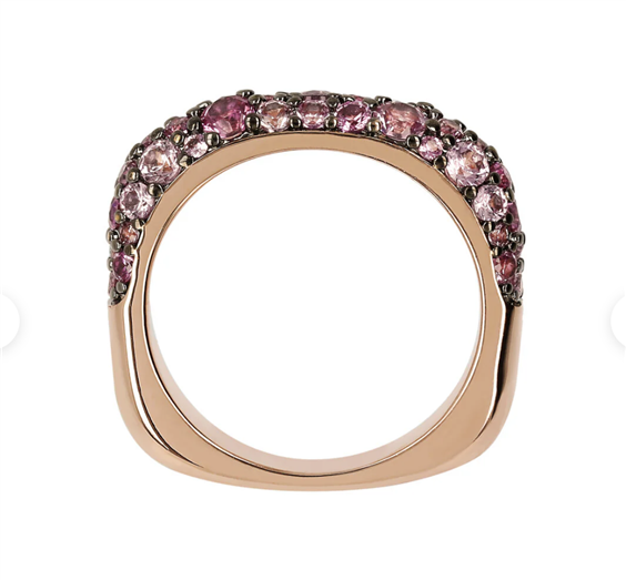 Anello riviera Bronzallure, dalla forma quadrata, realizzato in lega Golden Rosé, placcato oro rosa 18kt, impreziosito da un pavé in cubic zirconia, qualità luminosa. La posizione delle pietre è studiata per creare un effetto ombra delicato e giovanile. Lega brevettata Golden Rosé Designed and made in Italy Nickel free, cadmium free Ipoallergenico