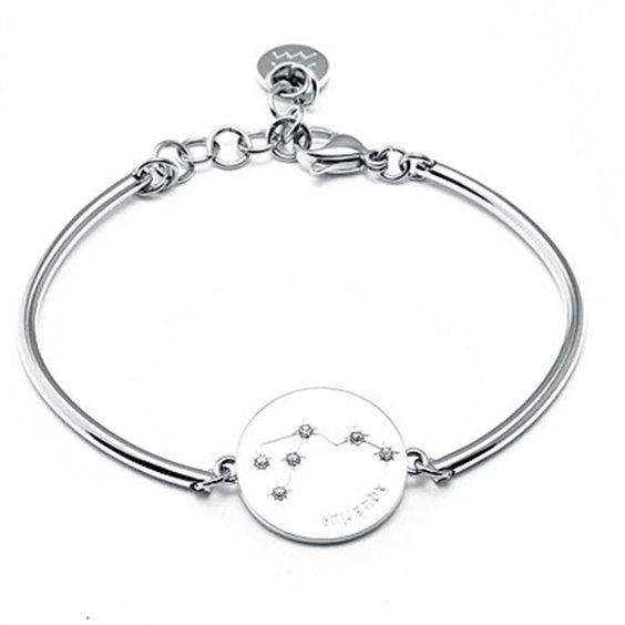 Bracciale Brosway da donna collezione Chakra. Realizzato in Acciaio 316L. Piastrina centrale con inciso il segno zodiacale dell'acquario e cristalli Swarovski.