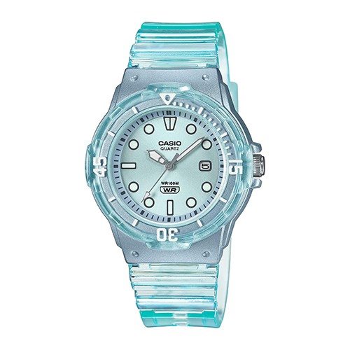 Immergeti nello splendore e nella lucentezza di un orologio analogico compatto con lunetta e cinturino traslucidi. Indicatori ispirati alla nautica e un quadrante che richiama i raggi del sole con una lucentezza metallica si fondono per dare vita a un design sofisticato ed elegante.