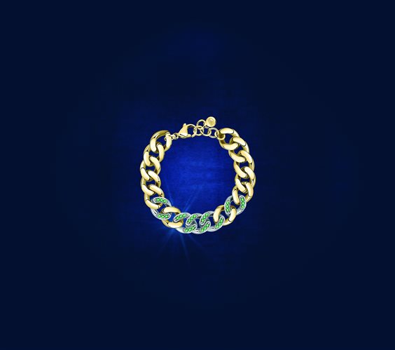 Bracciale Chain Gold and Silver zirconi verdi 17+2,5cm
