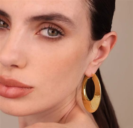 Orecchini Etrusca Gioielli realizzati in lega Golden, placcata Oro giallo 18kt, con superficie martellata. Designed and made in Italy Ipoallergenici