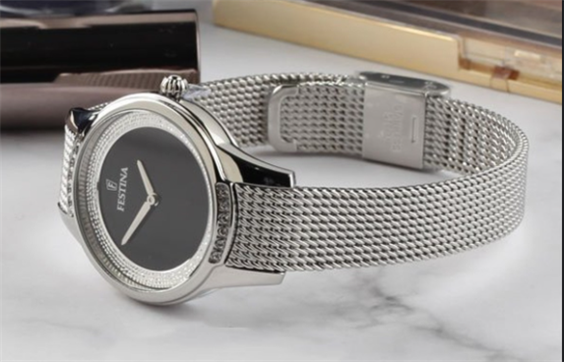 Orologio Festina da donna con movimento al quarzo e funzioni di solo tempo. Cassa in acciaio inox dal diametro di 30,2 mm impreziosita da cristalli bianchi. ... Cinturino in maglia milano d'acciaio anallergico; chiusura deployante con pulsanti. Resistente all'acqua fino a 50 metri di profondità.