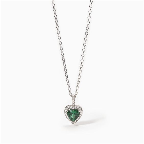 Girocollo in argento 925/°°° rodiato, smeraldo sintetico taglio cuore contornato da zirconi bianchi. Catena maglia forzatina. Pendente cm 0,8. Misura regolabile da cm 40 a cm 45.