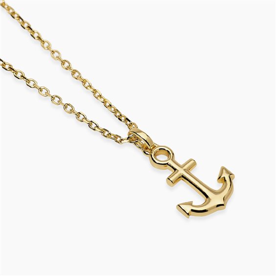 Collana regolabile in argento placcato oro 18K con catena forzatina e ciondolo ancora. • Dimensione ancora: 11,1x16 mm • Dimensione catena: 1,5 mm • Misura regolabile, lunghezza da 45 a 50 cm • Materiale: Argento 925 • Finitura: Placcatura in oro 18K