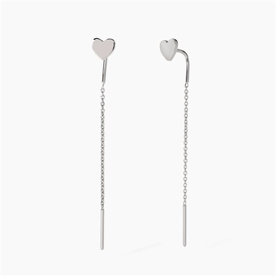 Orecchini in argento 925/ººº rodiato con catena rolò 1.1 mm e cuore 6.5x6 mm, lunghezza totale orecchino 5.6 cm
