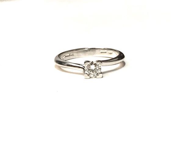 Anello solitario in oro bianco con 4 graffe a cuore, diamante taglio brillante da 0.30 ct, G SI