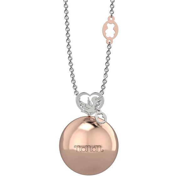 Pendente Da Mamma Di Nanan Della Collezione Nanàn Bijou. Pendente In Argento 925 Della Misura: 100Cm, Sfera Rosa Con Cuore, Cicogna E Orso Argento. Questo collana verrà spedito con Scatola Originale Nanan
