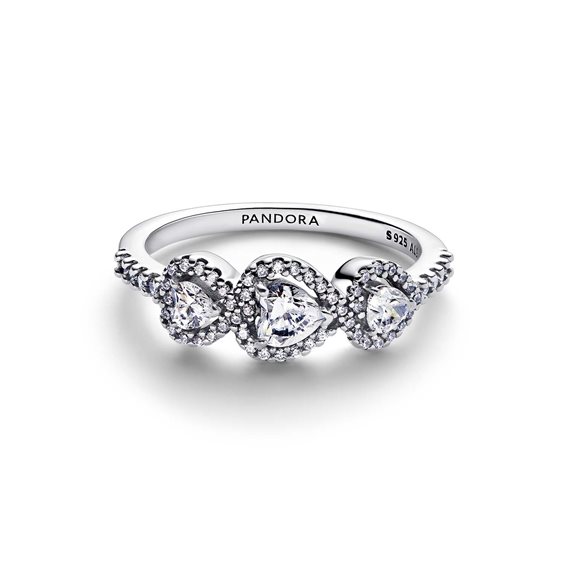 Anello Triplo Cuore in Argento Sterling 925con zirconia cubica incolore