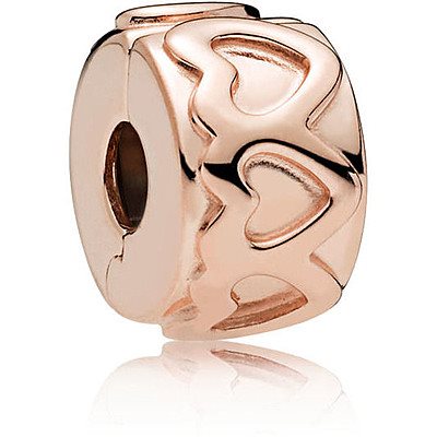 Clip Pandora Fascia di cuori in lega metallica placcata oro rosa 14kt decorata con giro di cuori in rilievo