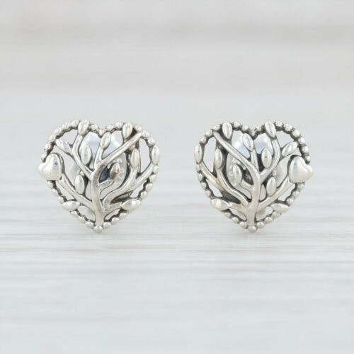 Orecchini Da Donna Di Pandora. Gioiello In Argento 925 A Forma Di Cuore Raffigurante L'Albero Della Vita.