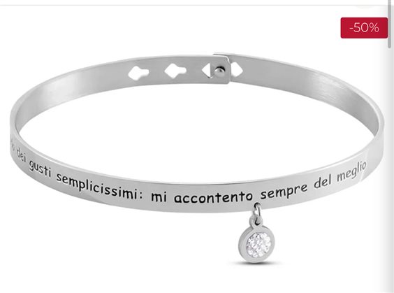 BRACCIALE FRASE:HO DEI GUSTI SEMPLICISSIMI MI ACCONTENTO SEMPRE DEL MEGLIO