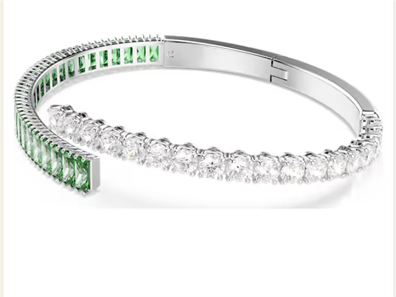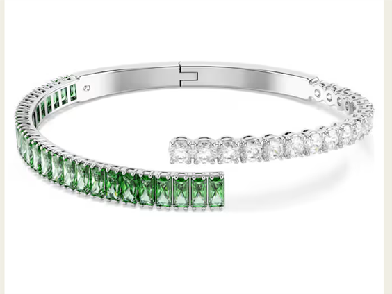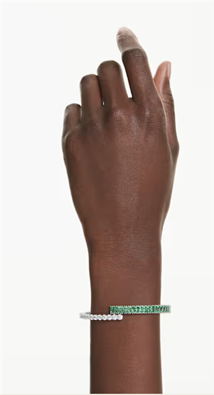 Colorato, energico ed espressivo, questo bangle Matrix è un modo gioioso per giocare con gli accessori. La fascia sovrapposta è placcata rodio e presenta Swarovski Zirconia trasparenti e verdi con tagli Round e Baguette. Una scelta vivace che si abbina splendidamente all’anello e agli orecchini coordinati. Taglia L