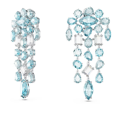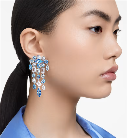 Ravviva il tuo stile con questi straordinari orecchini a clip Gema. Il design a chandelier si dispiega con un affascinante mix di tagli di cristalli color blu oceano disposti in maniera originale ma rigorosa per un look di massima spettacolarità. Indossa questi orecchini dal fascino davvero unico per un effetto glamour istantaneo adatto a qualsiasi occasione. Immagini a scopo illustrativo.