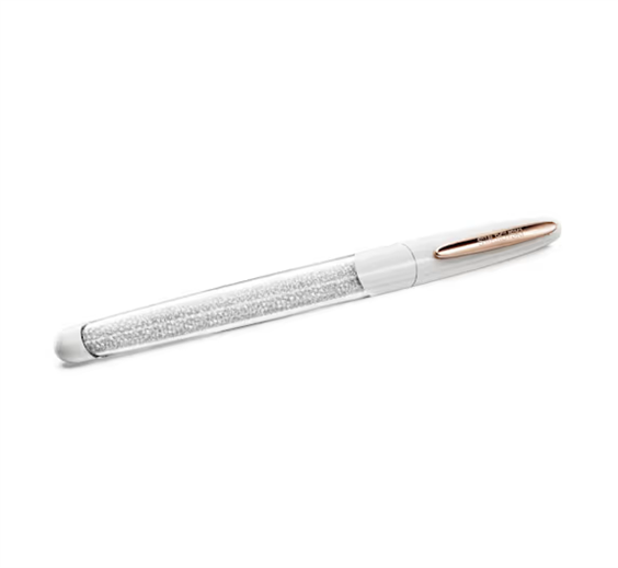 Molto più di un semplice strumento di scrittura, questa penna roller Crystalline Nova è impreziosita da circa 400 cristalli Cry, grazie all’utilizzo della tecnica unica Crystalline. Una clip placcata in tonalità oro rosa impreziosisce il fusto e il cappuccio bianchi lucidi. Questa penna roller dalle linee sottili è un’idea regalo originale. I refill d’inchiostro nero e blu sono disponibili per l’acquisto presso gli store Swarovski. Articolo nr.: 5728390 Collezione: Crystalline Nova Dimensione: 14.5 x 1.1 cm Materiale: Cristalli, Laccato bianco, Placcato color oro rosa Colore: Bianco Colore dell’inchiostro: Nero