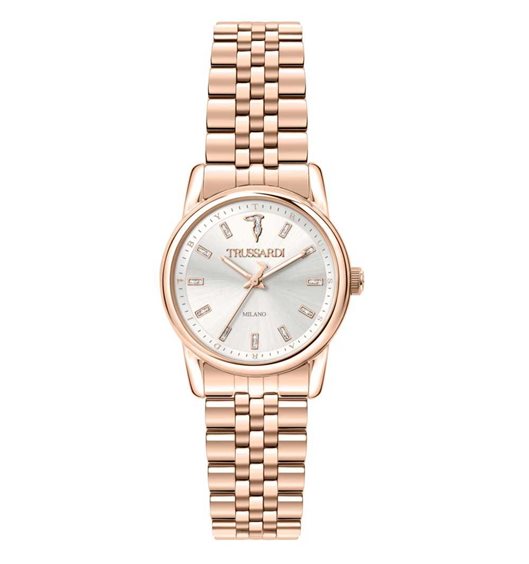 Orologio Solo Tempo Da Donna Di Trussardi. Orologio In Acciaio, Pvd Oro Rosa. La Cassa è in Acciaio Con Finitura Lucida Del Diametro Di 30Mm Con Vetro Minerale. Il Cinturino È In Metallo Di Colore Oro Rosa La Resistenza All'Acqua È Di 5 Atm.