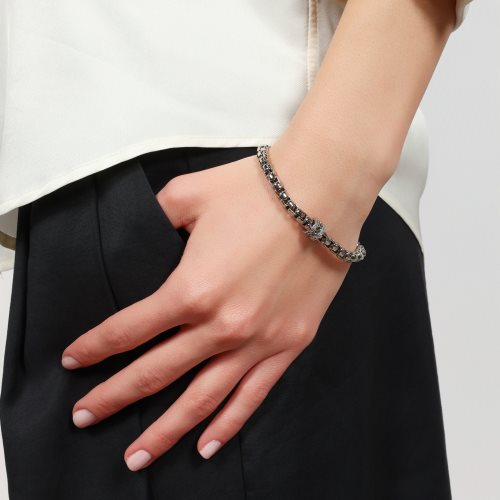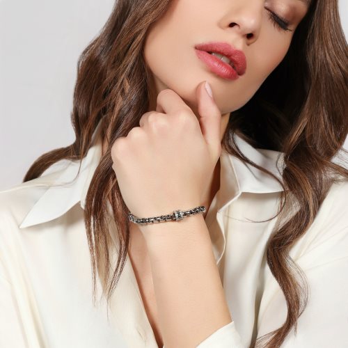 Bracciale in catena veneziana con centrale traforato openwork e zirconi. Chiusura a moschettone, misura 19,00 cm. Collezione classica. Esprimi il tuo stile con questo bracciale in catena veneziana. Un gioiello distintivo, dal design elegante e deciso, ideale per valorizzare ogni look. Un accessorio statement, perfetto sia di giorno che di sera. Qualità e finish luminoso, ottima idea regalo per chi ama distinguersi. Placcatura in palladIO