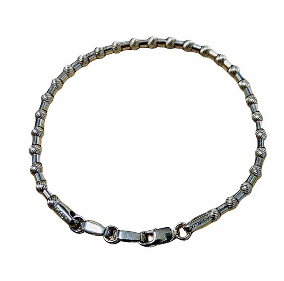 Bracciale marchio Zancan in argento 925 composto da palline rigate alternate a cilindri lisci . Chiusura di sicurezza a moschettone.