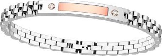 Bracciale Zancan in acciaio, zirconi bianchi e con trattamento pvd in oro rosa. Mis cm. 21